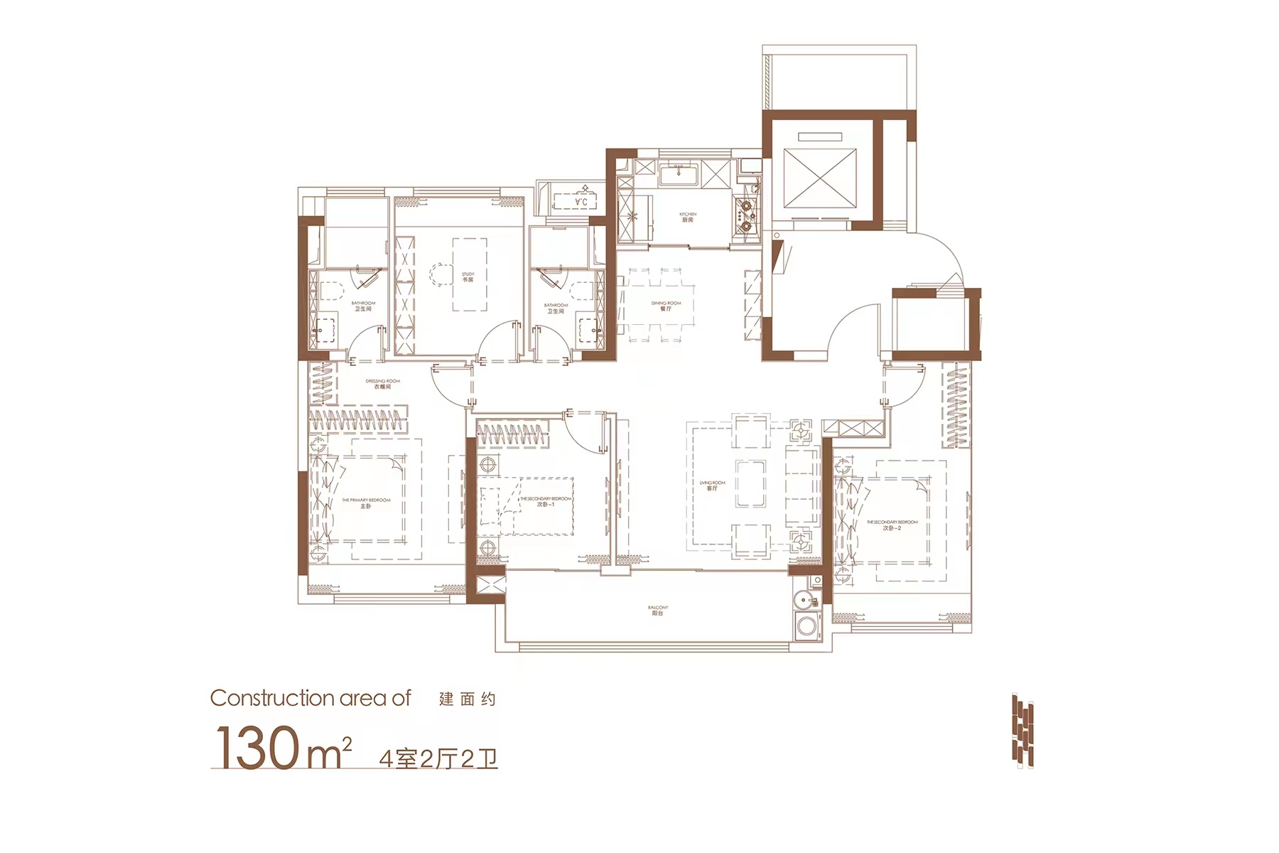 4室2廳2衛(wèi)|約130㎡(建面)
