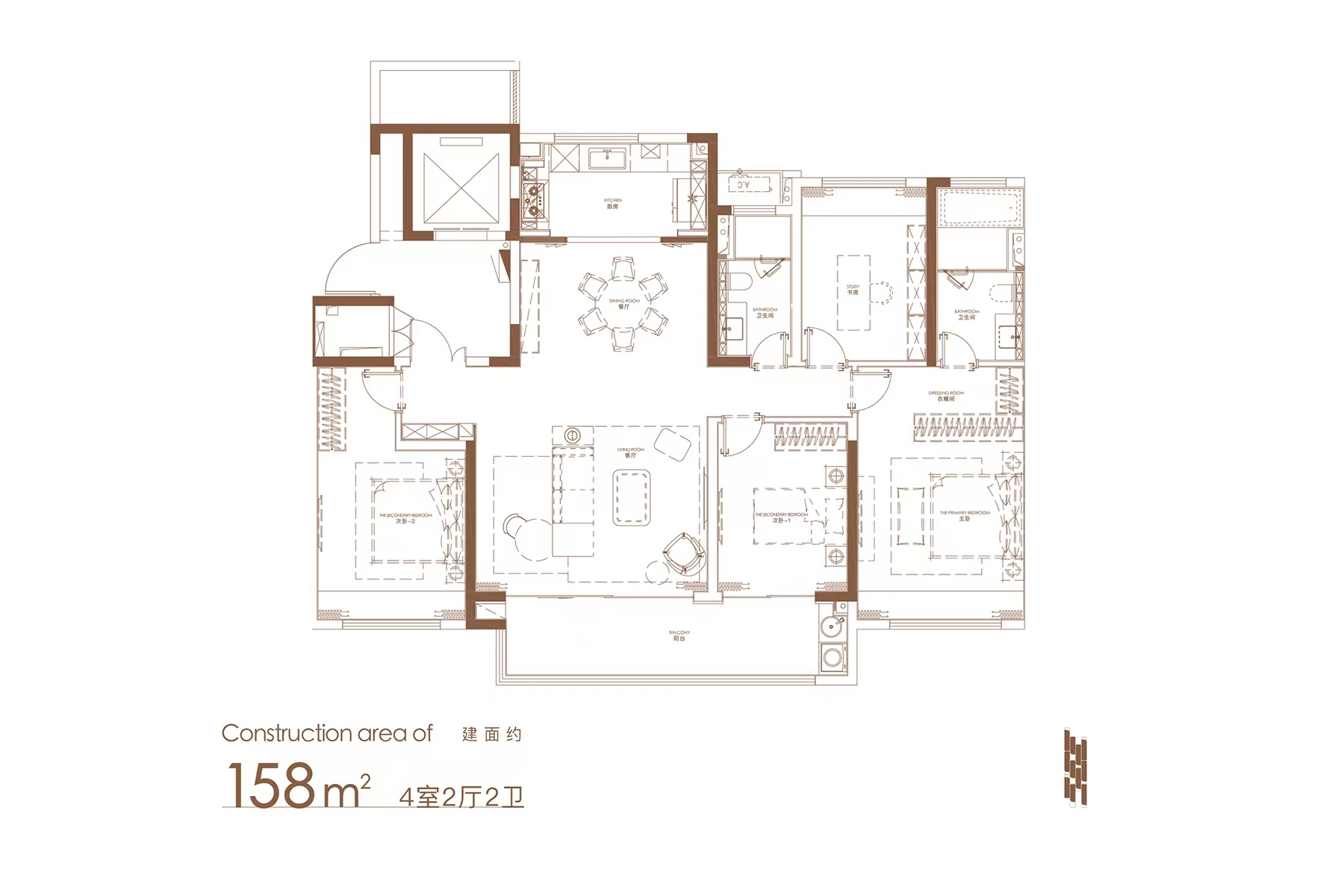 4室2廳2衛(wèi)|約158㎡(建面)