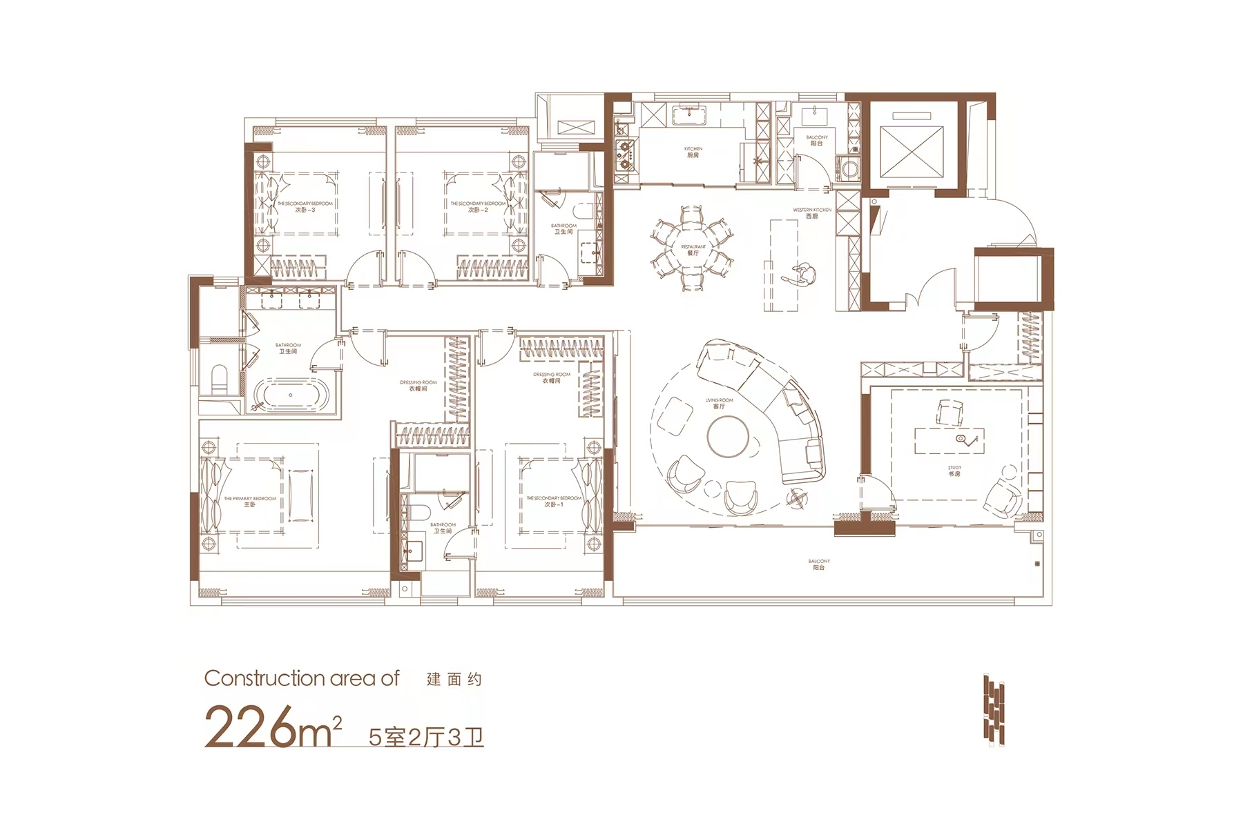 5室2廳3衛(wèi)|約226㎡(建面)