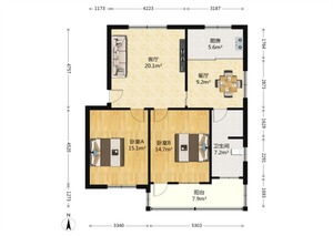 2室2廳1衛(wèi)戶型