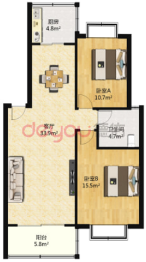 2室1廳1衛(wèi)戶型