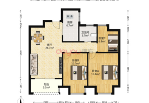 3室2廳1衛(wèi)戶型