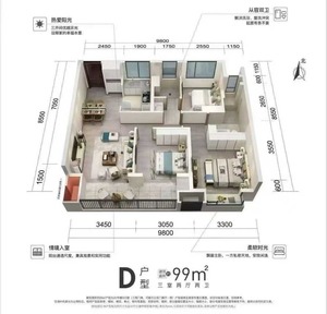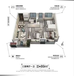 3室2廳1衛(wèi)戶型