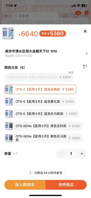 出售閑置新松OT-5制氧機(jī)一臺 醫(yī)用級別 買時六千出頭!閑置在家 出給有需要的人